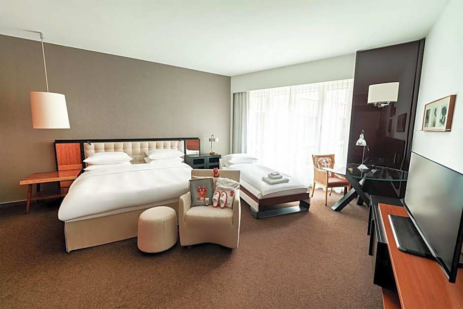 On-site dining presents options like Vox Restaurant, offering Japanese and International dishes, and Tizian Restaurant with International fare in a modern setting. A rooftop indoor pool for adults adds a sleek twist, complemented by a spa and fitness facilities for a wellness-focused stay (Spa, Sauna, Turkish bath, indoor pool, and more). Live music performances add a touch of evening charm, while the terrace, sun deck, and bar invite lingering moments after a day of exploring.
